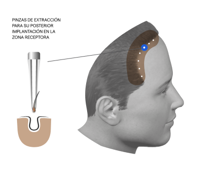 La extracción de unidades foliculares -que luego se trasplantarán- se realiza mediante la técnica F.U.E., del inglés, “Follicular Unit Extraction” (extracción de unidades foliculares), es decir, las unidades foliculares se extraen una a una y se implantan, también, una a una. Se trata de un método artesanal que garantiza resultados 100% naturales.